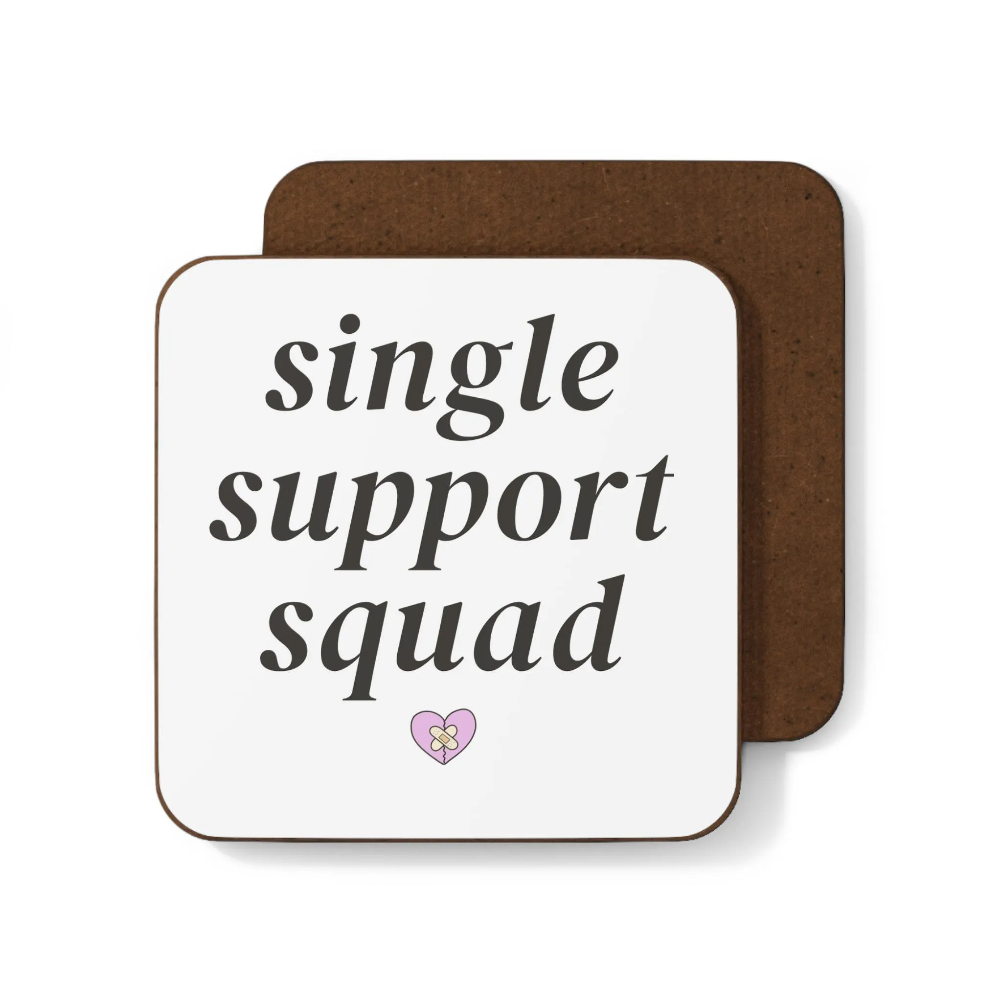 Meet your new best friend: the Single Support Squad drink coaster. Perfect for those solo nights in or gatherings with your fellow fabulous singles, this coaster is here to remind you that being single is a superpower. With a dash of sass and a whole lot of style, it’s the perfect accessory for your favorite drink. Cheers to loving yourself and your squad!